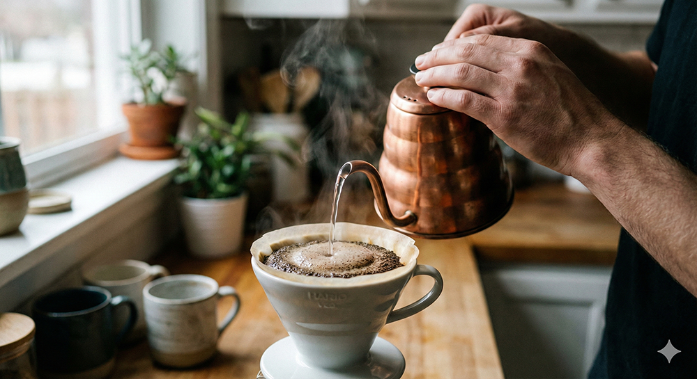 - Sıcaklık Meselesi: Suyu kaynatıp (100°C) hemen kahvenin üzerine dökmeyin; kahveyi yakarsınız. Kaynadıktan sonra 1-2 dakika bekleyin (92-96°C ideal aralıktır). Bu sıcaklık, aromaları nazikçe çözer.
